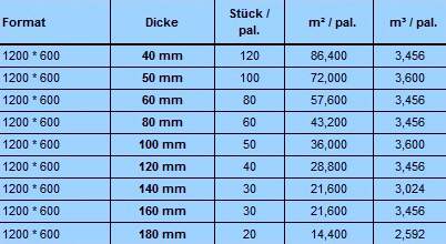Rohdichte 30 ± 5 kg. / M⊃3; (nach ETA 13-0518)